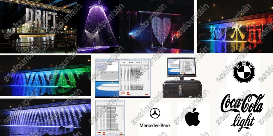 数码不帘重新改变了人们对瀑布的认识。通过数字技术对水流的控制,让水成阶段性放出形成垂帘,奇妙的是它不仅仅只是一道水帘。我们可以让它在流下的过程中形成任何的图案以及文字。并能通过编码让它像喷泉一样组合成千变万化的形状。